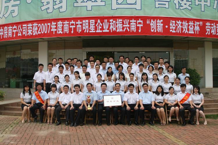 中房南寧公司榮獲2007年度南寧市明星企業和振興南寧“創新、經濟效益杯”勞動競賽金杯獎