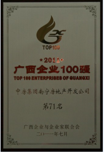 中房集團南寧房地產開發公司榮登2011廣西企業百強榜!