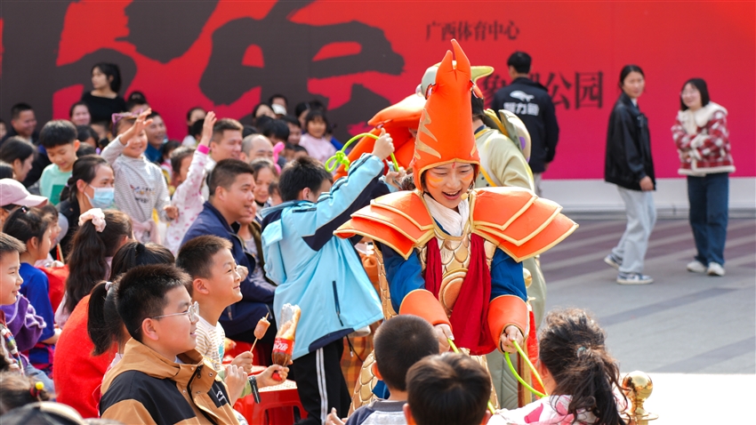 神話奇妙游園會同樣趣味好玩!在這里,小朋友們可以挑戰“混天綾”套圈、“乾坤圈”投壺、“乾坤弓”射箭等趣味游戲,還能參與陳塘關踢毽子大賽,讓大家在游玩中感受現代與傳統融合的國潮文化。